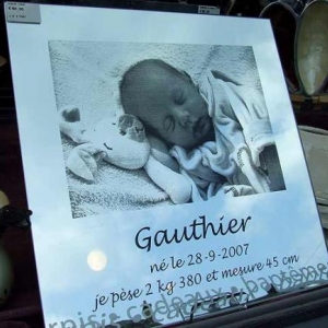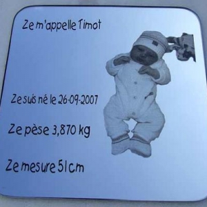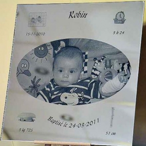 Miroir personnalisé gravure photo et texte naissance baptême anniversaire