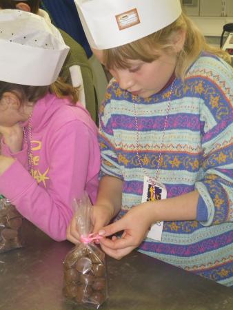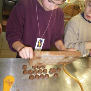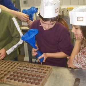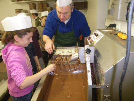 Après un petit film sur la provenance du cacao et la culture des cacaoyers, les chocolatiers en herbe se sont rendus dans l'atelier de fabrication, où ils se sont mis au travail.