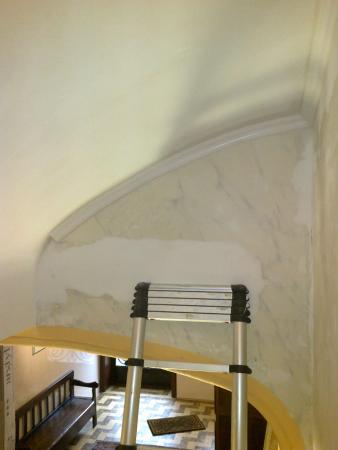 Rénovation d'une cage d'escalier en faux marbre (type blanc veiné) sur trois niveaux.