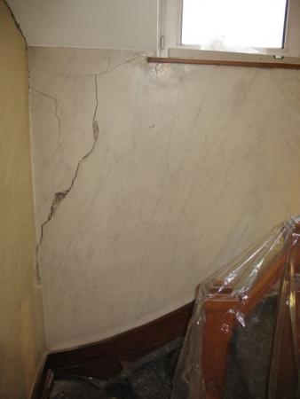 Renforcement des fissures avec une toile nylon et travaux d'enduisages.