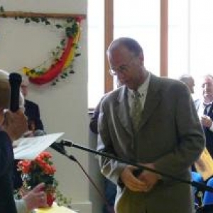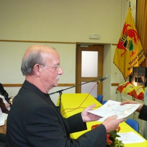 En ce 3ème week-end de mai, le Club wallon a célébré conjointement le 110ème anniversaire de sa création et le 130ème de la naissance d’un de ses fondateurs, le poète Henri Bragard. La vie et l’œuvre de ce résistant et écrivain d'expression de langue wallonne y ont été longuement évoquées. Né à Malmedy en 1877 sous le régime prussien, il reçoit le message de résistance de son oncle l’abbé Nicolas Pietkin et crée le Club wallon de Malmedy en 1898. Par son action politique et culturelle, Henri Bragard fit une intense campagne en faveur du retour de Malmedy à la Wallonie. Sa grande victoire fut donc la réintégration de la Wallonie malmedienne à la Patrie en 1918. Mais ce sont ces antécédents qui l’ont emmené dans les camps de la mort dont il ne reviendra pas. La manifestation organisée par les jubilaires couvrait deux journées. Le vendredi, en prélude à la partie officielle programmée pour le lendemain, un cabaret humoristique a comblé tous les spectateurs occupant la salle du Monastère. La journée du samedi, quant à elle, mit en évidence l’importance de l’identité wallonne de la région malmédienne, l’immense contribution d’Henri Bragard à la défense de cette réalité ainsi que et la « lutte » quotidienne pour la pratique de ce dialecte ( revues, rôles du carnaval, dictionnaire, …). Un programme de morceaux choisis du poète wallon, avec traduction française pour les moins initiés, mit en exergue les qualités et les subtilités de ses textes, certains interprétés avec accompagnement musical. En présence de M. Foret, Gouverneur de la Province de Liège, et de représentants de la Société de Langue et Littérature wallonne, M. Freddy Herbrand, Président d’Honneur, du Club wallon, mit à l’honneur les membres fidèles de ce groupement : Mme Dalem ( pour 55 années) ; Ms R. Collienne, G. Dostriche, H. Feyen, R. Kluckers , A. Nicolet, et B. Collienne ( 32 années) ; F. Schumacher ( 28 années) ; JP Drosson et H. Gentgès ( 27 années) ; J. Lodomez ( années) ; JL Mathonet ( 24 années) ; JC Maréchal ( 21 années) ; P. Alard, M. Etienne, Y. Michel, W. Querinjean et Steven Servais ( 20 années). ( Photos sur www.ardenneweb.eu)