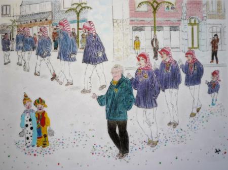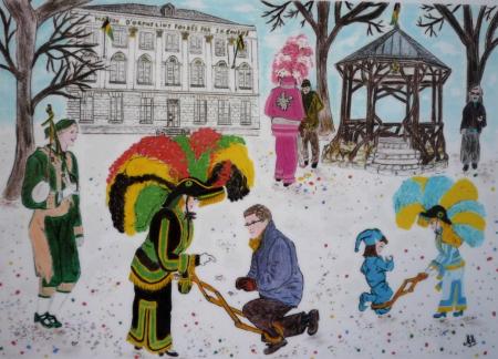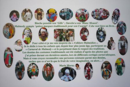Alors que les différentes sociétés préparent leurs effectifs respectifs durant les quatre jeudis précédant le week-end du Cwarmè, lui-même occupant quatre autres journées, les carnavalisants révisent quant à eux l’état de leur costume et autres ustensiles durant de longues semaines avant l’événement. Si les masques traditionnels sont de sortie uniquement lors de la parade du dimanche, de nouveaux accoutrements sont à confectionner chaque année selon les sujets retenus par les groupements organisateurs. Nous avons découvert deux artisanes qui, dans l’ombre, témoignent de leur passion carnavalesque par des activités diverses. Ainsi Isabelle Rome s’est attachée à reproduire chacun des 15 masques dans la broderie sur tissu, suivront les monuments de la Cité de bord de Warche. Après dessin, scannage, coloriage, élaboration point par point à l’ordinateur, la tâche se porte ensuite sur la machine à broder. La réalisation de la Haguète lui aura demandé 3 mois de travail. En finalité, ses objets d’artisanat se retrouvent sur des sets de table, des tabliers, voire sur des t-shirts. Pour ce qui est de Marie Moray, c’est le conte, son histoire et ses illustrations, qui retient son attention. Réalisant tout d’abord le dessin au crayon, elle le colorie avant de le scanner, le découper de manière à arrondir mes angles, le plastifier avant la reliure. La dernière histoire imaginée par la conteuse relate la visite de lutins à Malmedy et découverte du Cwarmè, ses masques et ses costumes mais aussi les rues et bâtiments de la Ville parfaitement reproduits, tous endroits que ces petits lecteurs ont déjà parcourus et vus et qui suscitent leur curiosité. Les productions artisanales de ces deux illustratrices originales du Cwarmè sont exposées à la Maison du Tourisme de Malmedy. ( Photos sur www.ardenneweb.eu )