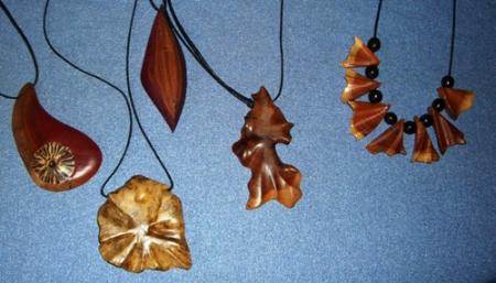 Et pendant qu’il tourne et façonne des objets, elle fabrique de merveilleux bijoux en bois précieux.