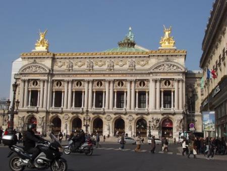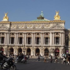 Le Palais Garnier est la treizième salle d’Opéra à Paris depuis la fondation de cette institution par Louis XIV en 1669. Sa construction fut décidée par Napoléon III dans le cadre des grands travaux de rénovation de la capitale menée à bien sur son ordre par le baron Haussmann. L’Opéra fut mis au concours et Charlier Garnier, jeune architecte inconnu de 35 ans, remporta l’épreuve. Les travaux durèrent quinze ans, de 1860 à 1875, interrompus par de nombreuses péripéties, dont la guerre de 1870, la chute du régime impérial et la Commune. En l’an 2000, la façade principale de l’Opéra a été totalement rénovée. Elle a retrouvé sa polychromie d’origine et les ors de sa statuaire. La nef du grand escalier est un des lieux les plus célèbres du Palais Garnier. Bâtie en marbres de différentes couleurs, elle abrite les degrés de l’escalier à double révolution qui mène aux foyers et aux différents étages de la salle de spectacle. Le grand escalier est lui aussi un théâtre, théâtre romain où se croisait au temps des crinolines un public choisi. Le plafond peint évoque, sur quatre parties, différentes allégories de la musique. La salle de spectacle, rouge et or, éclairée par l’immense lustre de cristal, réchauffée par les teintes franches du plafond de Marc Chagall et dessinée en fer à cheval, à l’italienne, compte 1 900 sièges de velours rouge. Le magnifique rideau de scène de toile peinte imite une draperie à galons et pompons or.