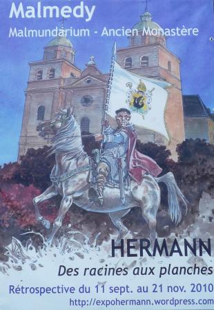 Né à Bévercé ( Malmedy ) en 1938, Hermann Huppen est marqué, dès son enfance, par la guerre. Une adolescence marquée par le souci de s’en sortir très vite tout seul et d’apprendre un métier : ébénisterie, architecture, décoration d’intérieur... Après un séjour au Canada, Il épouse la sœur du directeur éditorial des Editions Dupuis. Avec son beau-frère au scénario, il illustre sa première histoire qui est une parodie de bande dessinée pour une revue de scouts. Le scénariste Greg lui propose d’illustrer un de ses albums qui voit la première apparition de Bernard Prince. Influencé par Jijé, Hermann ( son nom de plume ) utilise de gros traits noirs et de larges taches d’ombre. Il surprend par le dynamisme de son dessin et sa force d’expression. En 1977, Hermann ressent le besoin de créer ses propres histoires. Ni western, ni science – fiction, avec « Jeremiath » et son côté futuriste, il démontre l’inutilité du rêve humain. Se succèdent alors « Nic » publié dans Spirou, puis une fresque médiévale. Ensuite, pour « Sarajevo – Tango « , il abandonne les techniques traditionnelles et franchit le cap de la « couleur directe », un album pour lequel il reçoit le prix Oesterheid. Avec 96 albums et 45 ans, Hermann présente une carrière inouïe et se définit comme « un indépendant discipliné, amoureux des images et jaloux de leur liberté ». Du 11 septembre au 21 novembre, l’exposition « Des Racines aux planches » présente plus de 220 œuvres, dans l’ancien Monastère de Malmedy, ville qui l’a vu naître et où sa sensibilité artistique s’est façonnée. Cette rétrospective s’articule autour d’un fait majeur : la sortie nationale d’un nouvel album durant ce mois de septembre : 25 ans après, Hermann refait un nouveau Bernard Prince.