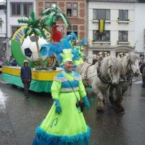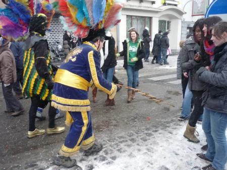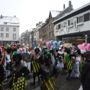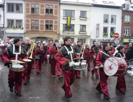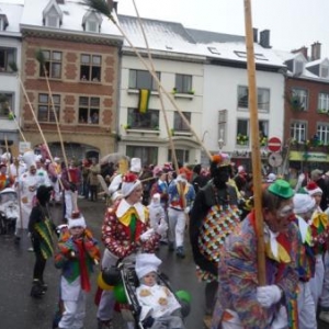 Le ciel n’aura pas été clément pour cette édition puisqu’une pluie de neige fine n’a pas cessé de tomber durant toute la journée de dimanche. Mais il en faut plus pour décourager les participants de cette parade folklorique wallonne qui, durant plusieurs mois, auront mis au point costumes, chars et animations de cette journée culminante des festivités. Dès midi, la danse de la haguète aura occupé la Place Albert 1er. A 13.30 h, le cortège composé des sociétés locales et de leurs nombreux sympathisants parcourt les artères de la Cité, précédé par le "Trouv'lè", figure emblématique et détenteur du pouvoir durant ces quatre jours. Le Syndicat d’Initiative local a fait parvenir aux habitants un lot de ballons destinés à décorer les demeures aux couleurs locales. Les masques traditionnels dont les origines remontent loin dans le temps ainsi que les nombreux « petits rôles » taquinent le public, venu moins nombreux cette année en raison des conditions climatiques. Les costumes chatoyants et très colorés ont épaté un public parfois clairsemé qui participait de bon gré aux jeux proposés par les acteurs de rue. De nombreux chars élaborés par les sociétés et groupements locaux et régionaux complétait ce cortège typiquement wallon, et ceci à quelques encablures de la région germanophone. La parade animée arrivant à son terme, les « bânes corantes » se poursuivaient dans le centre de la localité avant le bouquet final où chaque formation musicale participant au cortège est mise à contribution. Les spectateurs pourtant équipés en conséquence, recherchent alors boissons chaudes et autres victuailles telles saucisses et marrons chauds afin de récupérer les énergies dépensées. La journée du dimanche se prolongealors par la tournée des nombreux bistrots et restaurants ou encore par un passage "obligé" à la partie dansante tenue en la salle de « La Fraternité ». ( 145 photos )