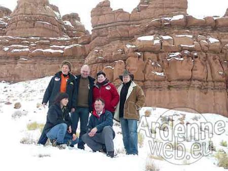 La grande nouvelle est que nous sommes sous la neige; il neigeait bien ce matin lorsque nous avons quitté Grand Junction. Et nous avons pris un peu de retard suite à un petit problème avec le véhicule de location : la jeep louée n'avait pas de plaque ! Je m'en suis aperçu alors qu'Arjan arrivait avec à l'hôtel pour nous embarquer tous.