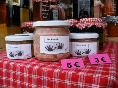 Au bout d’un étal, appétissant échantillon d’une vaste culture, s’amoncellent des confitures.