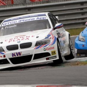 Fort de sa position avantageuse au départ de la seconde course, la BMW d’Andy Priaulx prenait d’autant plus facilement les commandes du peloton que la Seat de Norbert Michelisz, placée à ses côtés en première ligne, éprouvait toutes les peines du monde à s’élancer.