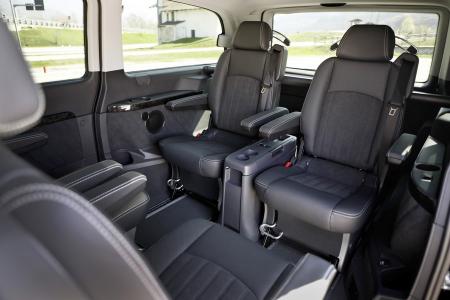 Plusieurs aménagements intérieurs sont disponibles. Vous pouvez choisir, en option, six places, dont quatre fauteuils “Club”, ou encore sept ou huit places, avec des banquettes. En fait, tout est possible avec le Viano, à condition d'y mettre le prix. La première sensation est d’être au volant d’un engin volumineux. Mais la position de conduite typée "camionnette" n’est pas désagréable, et on a l’impression de se trouver assis dans un fauteuil. La boîte auto 5 rapports du 2.2 Diesel confirme la maîtrise de Mercedes dans ce domaine. En effet, les chiffres d’accélération sont meilleurs avec la boîte auto très réactive et plaisante ! De plus, le levier est placé de manière très ergonomique, ce qui préfigure une utilisation aisée de la boîte manuelle 6 vitesses pour les versions Diesel. Le confort est au niveau d’un monospace classique. Le Viano reste donc avant tout une sacrée bête de somme, parfaite sur long parcours autoroutier et imbattable lorsqu'il s'agit de transporter une famille nombreuse et ses bagages. La sécurité est aussi digne de l’insigne sur le capot. Ce dernier, moins droit qu’un utilitaire et rallongé, offre un potentiel d’absorption de l’énergie cinétique élevé, ce qui garantit une meilleure protection au conducteur et aux passagers en cas de choc frontal. Les airbags sont présents en nombre suffisant et la panoplie d’aide électronique est complète. ABS associé à la régulation de l’antipatinage ASR, répartiteur de freinage EBV, freinage d’urgence assisté BAS et ESP sont là pour aider le chauffeur et corriger ou diminuer l’impact des erreurs de jugement ou de réaction du conducteur. Une suspension pneumatique est disponible en option (de série sur Ambiente). Elle est équipée d’un correcteur d’assiette automatique à l’essieu arrière en liaison avec une suspension acier confort à l’essieu avant.