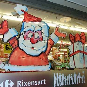 Boule et Bill en pére Noël sur les vitrines de la commune de Jette