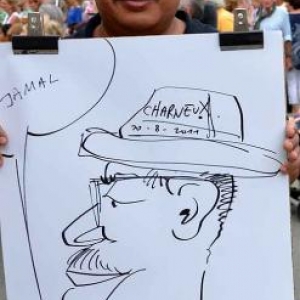 Les visiteurs de Ch'art'neux reçevaient leur caricature réalisée en quelques minutes par Jean-Marie Lesage, ce dimanche 21 août 2011.
