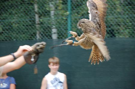 Il s'agit d'un spectacle de rapaces: faucons, aigles, vautours (le célèbre condor fait partie de cette famille), hiboux et chouettes.