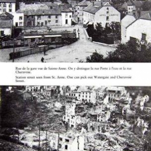 • Route de la gare. NB: chaque paire de photos représente plus ou moins le meme point de vue avant et apres les bombardements.