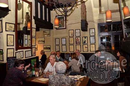 Raison pour laquelle, un mur est couvert de dessins de Attanasio, Adam, Walthery ou Abdel. Un vieux piano avoisine une série d'agrandissements de cartes postales rappelant des souvenirs du Vieux Uccle : " Au Merlo café –restaurant", ou la "Laiterie de la Grande Ferme du Vivier d'Oie ". Au fil des salles, l'œil se trouve être accroché par des couvertures d'albums de Hergé ou une balance ancienne. Dans la petite salle aux murs rouges, une bibliothèque avec, pêle-mêle, des œuvres de Paul Chack, Dickens, Simenon ou Corneille. La chaleur de l'ensemble se maintient avec un dallage approprié et des tomettes séculaires et une superbe crémaillère d’époque venue de la maison de Marc Danval.