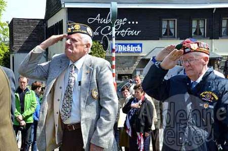 Les 3 GI’s survivants étaient reçu à la commune de Manhays vers 10h30 puis sont venus se recueillir sur la stèle en souvenir de l’Offensive située au carrefour de la Baraque de Fraiture vers 11h45. Un des GI’s survivant occupa le bâtiment de l'hôtel du carrefour pendant les combats de 44-45.