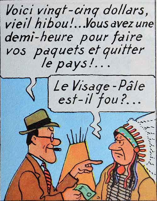 L'expulsion des Indiens de leurs terres, où gît du pétrole, dans Tintin en Amérique.