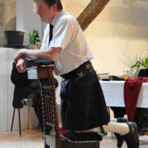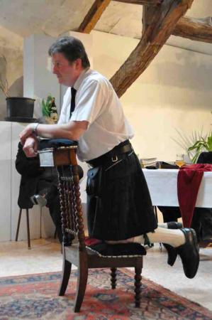 Car il a osé : c’est vêtu d’un kilt irlandais qu’il a plié les genoux et d’une voix poignante prononça le pathétique serment de fidélité à la Chouffe.