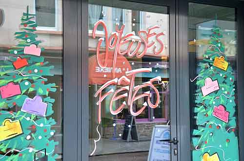 Boule et Bill en pére Noël sur les vitrines de la commune de Jette