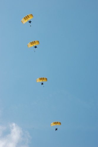 Le saut des parachustistes canadiens "Skyhawks"' en partant d'un C130 Hercules belge était impressionnant.