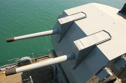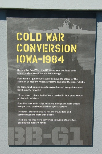 Un peu d'histoire: c'est le bâtiment qui porte le nom de sa classe (en effet la classe Iowa concerne au moins 6 navires: l'USS Iowa, l'USS Missouri, l'USS New Jersey, l'USS Wisconsin, l'USS Illinois, l'USS Kentucky et l'USS Arizona). L'USS Iowa servit au président Roosevelt pour aller à Yalta afin de rencontrer Staline et Churchill (avant son transfert en avion), le bateau fut créé en 1943, prit part à des combats dans la flotte du Pacifique en 1944. Il participa à la guerre de Corée. Il fut retiré du service en 1958 mais réintégré et modernisé dans les années 1980 pour atteindre les standards d'armement de l'époque dans le cadre d'exercices navals de l'OTAN.