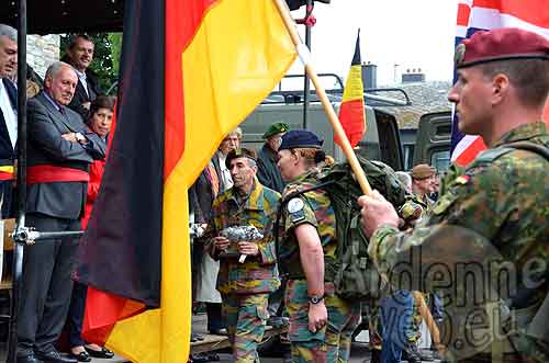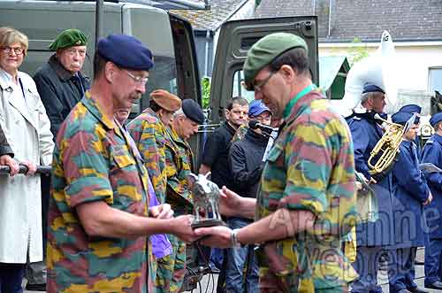 11h45 idem devant monument des Chasseurs Ardennais rue de l’Hotel de Ville – 12h00 idem devant l’autre monument rue de l’Hotel de ville.