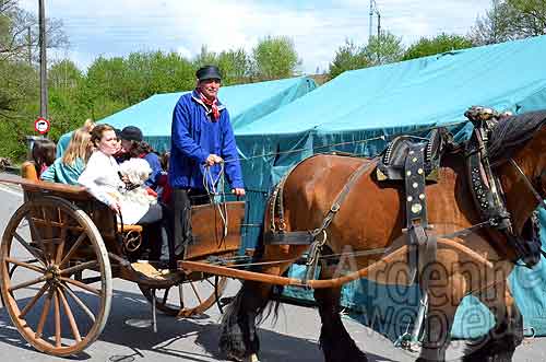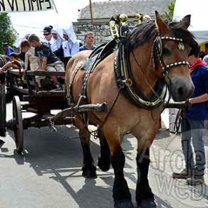 Des chars à bancs débordants d’enfants menés par de lourds chevaux ardennais aux cuivres étincelants.