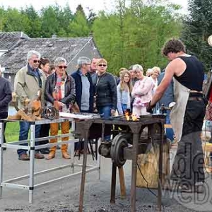 Dispersés dans le village, c’est un peu plus de cinquante artisans et exposants qui se feront un plaisir de vous faire revivre à bon vî timps. Ainsi vous pourrez rencontrer le forgeron, le bourrelier, le fagotier, le fabricant de balais, le fabricant de moules à beurre, le fabricant de râteaux en bois, le travailleur de noisetier, de saule, de seigle, de cuir, de rotin, le fabricant de manches à outils, le potier, le pailleur, la personne qui canne les chaises, le fabricant de rouets, le batteur de faux, les scieurs de long, le tondeur de moutons, les batteurs de fléaux, le tailleur de pierre, les dentellières, les lavandières, les fileuses de laine, les brodeuses, les modistes, les graveurs sur bois, le crieur de rue, les curés de campagne et leurs enfants de cœur, les gendarmes en costume d’époque, les religieuses, le boulanger, le légumier, les peintres, le graveur sur verre, l’ardoisier et bien d’autres encore.