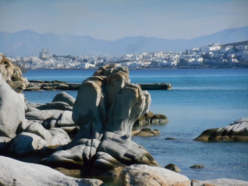 Paros présente un paysage de carte postale avec ses petites maisons-cubes soigneusement chaulées, qui semblent s’entasser en magma blanc laiteux dans la rocaille sèche et ocre, juste au-dessus d’une Egée bleu sombre qui vire au transparent claire. Les jolies plages de sable portent les noms de Santa Maria, Prodomos, Logaras, Pisso Livadi, Drios ou encore Aliki et Golden Beach. Les amateurs de farniente et de sports nautiques seront comblés à Paros. Mais la plage la plus connue et la plus belle est celle de Kolimbithres, bordée d’énormes rochers de granite sculptés par le vent et les vagues. En face de Kolimbithres se trouve la station et le port de Naoussa, mon coup de cœur à Paros.