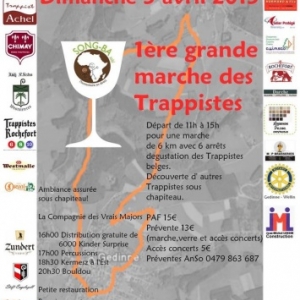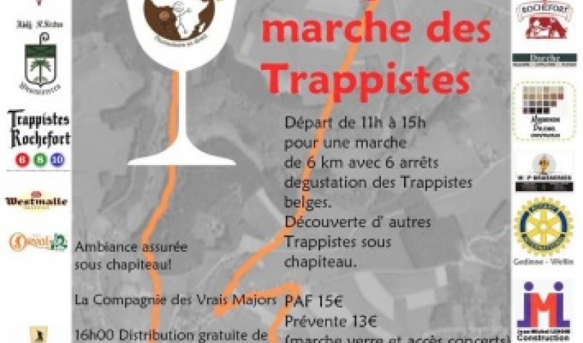 Départ de 11h à 15h, pour une marche de 6 km, avec 6 arrêts dégustation des Trappistes belges... et d'autres, sous chapiteau...
