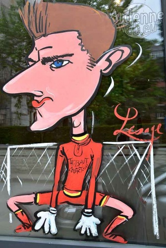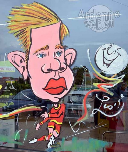 A l'occasion de l'Euro 2016 de nombreux commerçants soutiennent les Diables rouges en offrant sur leur vitrine la caricature de leur joueur préféré.