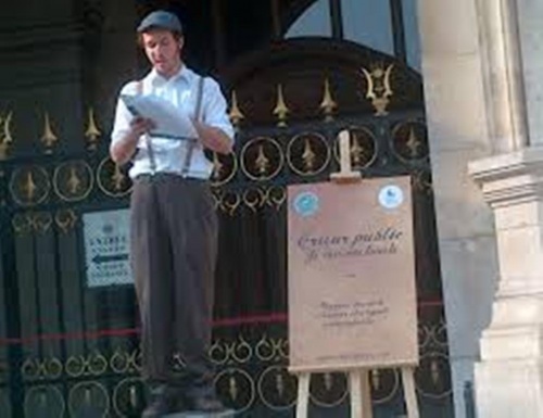 Auvers-sur-Oise ( où séjourna Vincent Van Gogh ) accueille également un crieur tous les dimanches à 12h sur la place de la mairie : « T'écris, je crie. Le crieur public crie vos poèmes, messages personnels, avis de recherche, mots d'amour, petites annonces... Les messages d'amour sont gratuits, car l'amour n'a pas de prix. 1 euro les autres messages. » Les bénéfices sont reversés à une association de solidarité qui distribue des colis alimentaires aux plus démunis.