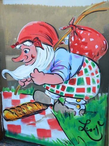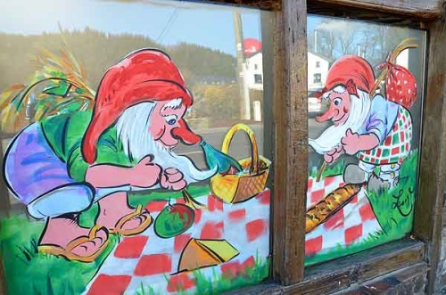 Achouffe peinture sur vitrine