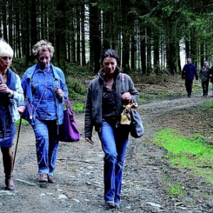 Départ à pied vers le site de récolte de la sève de bouleau. Parcours de +/- 6 km