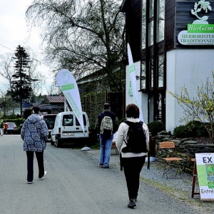 Une exposition sur le bouleau dans tous ses états était organisée dans les locaux de l’Herboristerie BIOGEM. On pouvait y voir divers articles artisanaux en bois et en écorce de bouleau ainsi que plusieurs remèdes et produits alimentaires à base de sève de bouleau. Ceux-ci étaient proposés en dégustation, notamment un kombucha de sève de bouleau et le fameux hippocras de bouleau était servi en apéritif au départ de la randonnée gourmande. Durant toute la journée un « bar à sèves » était ouvert. De la sève fraiche y coulait à flot directement dans votre verre. En fin de journée, 10 jeunes bouleaux ont été plantés par la Fondation Arbres-de-Vie (www.arbres-de-vie.be ).