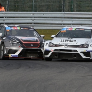 Un peu en retrait, la lutte a été animée entre Giacomo Altoè (VW Golf GTI), Guillaume Mondron (SEAT Leon), Sam Dejonghe (SEAT Leon), Kevin Abbring (Peugeot 308), Stan Van Oord (Audi RS 3 LMS) et Mathieu Detry (VW Golf GTI). Mondron et Dejonghe prenaient successivement l’avantage sur Altoè, de même que Van Oord (au 2ème tour) et Detry (sur la fin) par rapport à Abbring. Quatrième sur la grille, Lémeret a d’emblée été perturbé par des vibrations suite à un contact avec Abbring au départ. Perdant des places à chaque tour, il a dû abandonner à un tour de la fin, support moteur cassé. Le week-end était malheureusement terminé pour la voiture championne en titre. La Golf d’Armand Fumal a également été éliminée par des problèmes mécaniques.