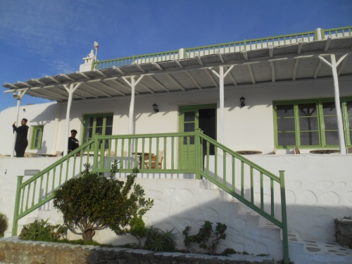 L'Hôtel Mykonos Beach***situé à Megali Amos, à quelque 5 minutes en voiture des moulins et à 7 minutes du port de Mykonos, est à conseiller pour ses petits maisons blanches, son accueil agréable avec Eva et Alex et la vue sur la mer Egée. Un moment bien agréable après les visites. Goûtez les calamares avec tzatziki et la retsina Malamatina.
