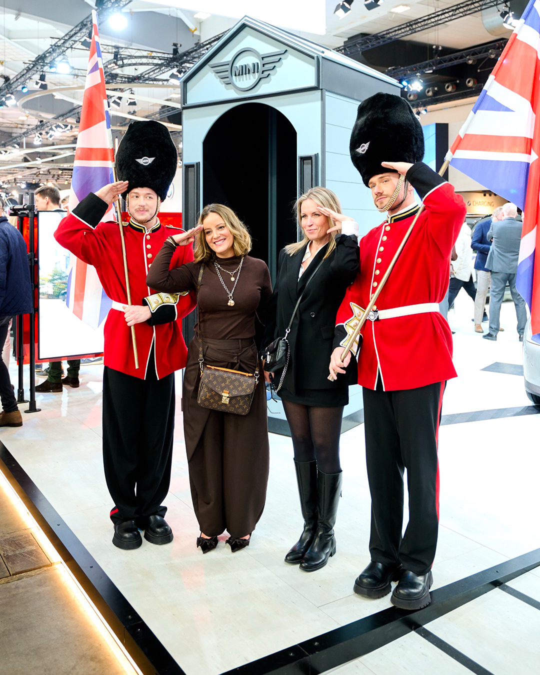 de l’Auto » pour voir des hôtesses dévoilant la beauté de leurs jambes, parfois accoudées sur de splendides carrosseries. Mieux, sur le stand de « Mini », ce sont deux hommes, portant chacun un drapeau de l’ « Union Jack », qui sont mis en scène, déguisés en « Grenadier Guards », ces bien connus militaires, aux bonnets à poils d’ours, qui gardent le Palais royal britannique. Pratiquement plus de brochures non plus. L’usage du « QR code » s’étant, désormais imposé, n’oublions donc pas nos « smartphones ».