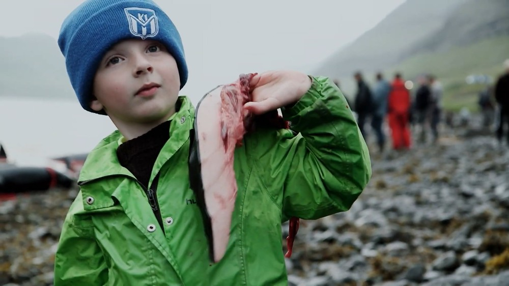 Synopsis : « Chaque été, des centaines de baleines pilotes sont chassées dans les fjords des Iles Féroé. Une tradition spectaculaire et sanglante nommée ‘Grind’. Des militants internationaux luttent contre la souffrance infligée à ces mammifères. Couteau en main, les Féroïens, eux, dénoncent l’hypocrisie de ceux qui mangent de la viande issue des abattoirs et d’industries polluant notre planète … »