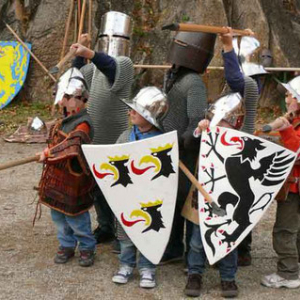 *** Egalement dès 3 ans, ici jusqu’à 17 ans, en deux jours, à 11h et 20h, nos enfants seront invités par l’association française « Guerre et Chevalerie » – en un lieu intitulé « L’Antre Cour et Jardin » – à un atelier leur permettant de revêtir de véritables armures de chevaliers du XIIè siècle, réalisées à leur taille. Sous forme de mini spectacles d’une quinzaine de minutes, ils apprennent ce qu’il faut savoir sur les armures (poids {une armure d’adulte pouvait atteindre 20 kg}, matériaux, souplesse, apprenant à bouger en armure, manœuvrer, se coordonner entre eux, sous la tutelle bourrée d’humour des chevaliers.