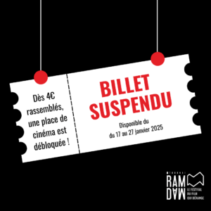 Unique en Belgique, le "RAMDAM" offre des billets d'accès à une séance aux personnes qui en ont besoin, grâce à leurs "billets suspendus", les festivaliers qui le souhaitent pouvant financer cette offre, à raison de 4€ l'unité.