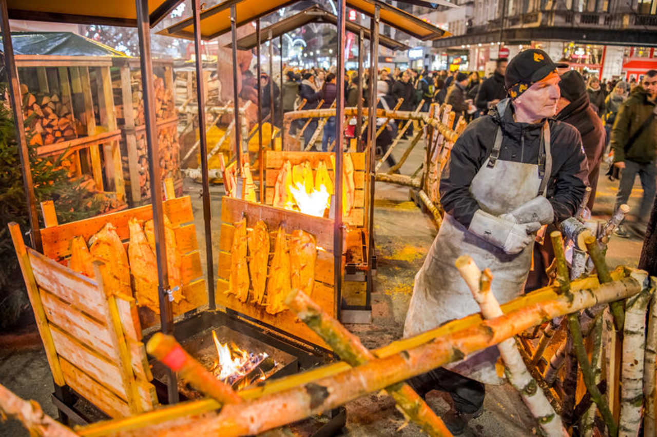 Sur la Grand’ Place, où trône un sapin – de 20 mètres de hauteur, décoré de symboles représentatifs de certaines