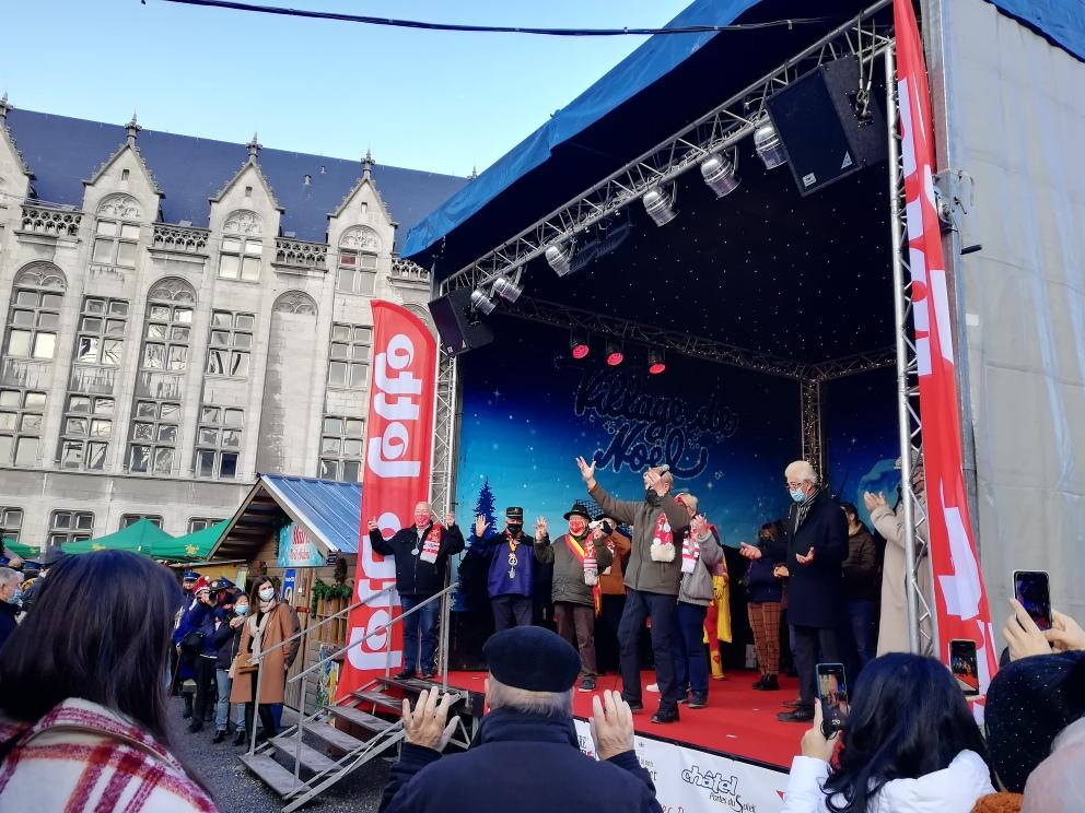 A Liège, au pied de la"Grande Roue", à côté de la Mairie du Village, sur le traditionnel podium de l' "Espace Tivoli", dressé sur la Place du Marché - rebaptisée Coûr Jean-Denys Boussart, ce dernier samedi 27 novembre, sur le temps de midi, en présence du Consul de Grèce, de responsables de partenaires français, d'un représentant de la Ville de Liège, de membres du Conseil villageois, Pierre Luthers, l'un des deux organisateurs, directeur de l'asbl "Enjeu", a procédé, à l'ouverture officielle du tant attendu "Village de Noël", son édition de 2020 ayant dû être annulée, pour cause de crise sanitaire, ... qui, venant de reprendre, provoquant nombre d'annulations d'événements, a failli avoir raison de la présente édition.