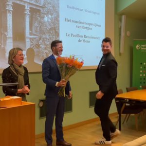 Soulignons que le « Pavillon Renaissance », à Mons, a su convaincre tant le public que ce Jury par sa valeur historique & architecturale exceptionnelle. Ce trésor patrimonial du XVIe siècle est un exemple unique d’architecture civile Renaissance. La forme ajourée du portail, les gravures, les bas-reliefs & les armoiries de Charles Quint (Charles de Habsbourg/1500-1558) rendent cet édifice particulièrement rare. Après un glissement de terrain, en 1955, ce « Pavillon » s’est effondré. Depuis lors, les fragments sont entreposés dans un espace vétuste, ce qui rend les éléments et leur lieu de conservation vulnérables.