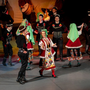 Fondé en 1948, cet ensemble présente des chorégraphies de danses traditionnelles de toutes les régions bulgares, leurs rythmes étant variés, leurs sons captivants, alors que les magnifiques costumes diffèrent selon les régions. De la région de Trakia, nous avons la réputée danse « rachenitsa thrace », avec ses claquements des mains sur les cuisses et les pieds, ainsi que le piétinement sur le sol. La danse agile et légère du « shopluk », avec son cri vigoureux, nous vient de la région de Shopski, alors que les danses de la région de Severnyashki se caractérisent par leur vitesse et leur vivacité, les instruments traditionnels étant le gaida (instrument à tuyaux), la kaval (flûte), le gadulka et le tamboura (instruments à cordes), ainsi que le tapan (tambour).