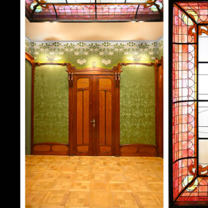 ** « Galerie Marc Maison » (Saint-Ouen-sur-Seine/N° 094), présente pour la première fois à la « BRAFA », nous propose un ensemble unique d’un rez-de-chaussée de 30 m2 de superficie pour 3,80 mètres de hauteur, créé, en 1903, en style « Art nouveau », par Victor Horta (1861-1947), .avec des boiseries en bois précieux et exotiques, du bronze, du chêne, du cuir, de l’érable ondé, du marbre rouge belge, des statuettes (en plâtre doré) de Pierre Bracke (1858-1938), des tentures de la maison lyonnaise « Prelle », une verrière & des vitraux, le tout ayant été réalisé pour la famille Deveterre-Bonnet, issue de la bourgeoisie industrielle de Kortrijk, avant d’être démonté en 1975.