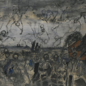 Si, bien sûr, ces œuvres ne sont pas mises en vente. Par contre, nombre d’exposants nous permettent de nous procurer des aquarelles, des estampes ou des peintures de Paul Delvaux, notamment « Nu dans l’Atelier » (« Galerie Jean-François Cazeau »/Paris) ; « La Fin du Voyage » (1968), par l’ « Opéra Gallery » (Genève) ; « Femmes devant la Mer » (1928) et « L’Eté » (1963) chez « Francis Maere Fine Arts » (Gent), « La Danse macabre » (1934), chez « Harold t’Kint de Roodenbeke » (Bruxelles), « Deux Femmes » (1950), sur le stand de la « Galerie Oscar De Vos » (Laethem-Saint-Martin), « L’Annonciation » (1952) chez « Van Herck-Eyckelberg » (Antwerpen), « La Tente rouge » (1966), présenté par la « Galerie Taménaga » (Paris), ainsi qu’ « Alésia ou les Captives » (1973), montré par « Guy Pieters Gallery » (Knokke).