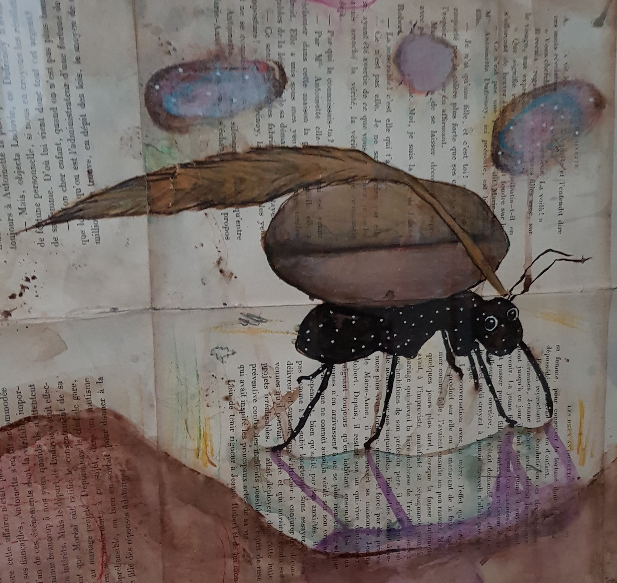 A notre question quant à sa passion artistique particulière, il nous répondit : « Depuis de nombreuses années, toute mon activité artistique se réalise en étroite relation avec des correspondances postales, qui, une fois récupérées, sont utilisées dans mes recherches plastiques, afin de sacraliser cette trace humaine en une œuvre d’art… »