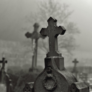 Toujours au rez-de-Chaussée, n’oublions pas un arrêt dans une vaste salle, où nous trouvons, aux côtés d’une collection de crucifix de l’Abbaye, des photographies d’autres croix catholiques, prises – dans différents cimetières ou en pleine campagne – par Thierry Dupièreux … Un authentique hymne à la photo artistique en noir et blanc.
