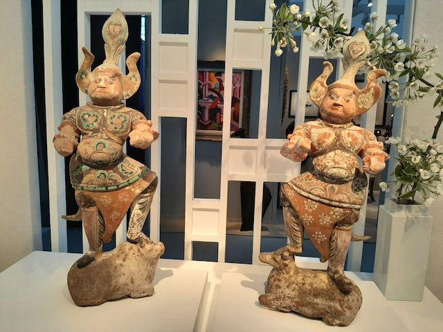 ** B-08 : « Ming-k’i Gallery » nous propose, notamment, un « couple formé d’un joueur de balle et d’une porteuse de bol » (100 avant notre ère-an 250), nous venant du Mexique ; un masque funéraire (1000-1450), du Pérou ; ou encore, provenant de la Chine, un ensemble, en terre cuite, de dix musiciennes (dynastie Wei de l’Est/534-550), ainsi qu une paire, en terre cuite, de gardiens d’une tombe (dynastie Tang/618-907).